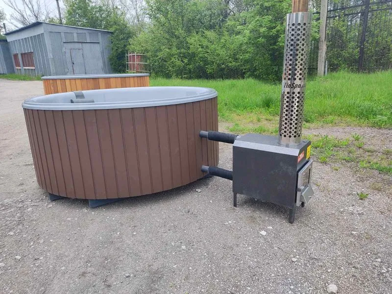 Wood-fired spa “Oasis” with an external boiler is an ideal solution for relaxing in a small company. The dimensions of the ready-made pool are 2.1 m x 0.95 m, thanks to its round shape it will perfectly complement the relaxation and recreation area.