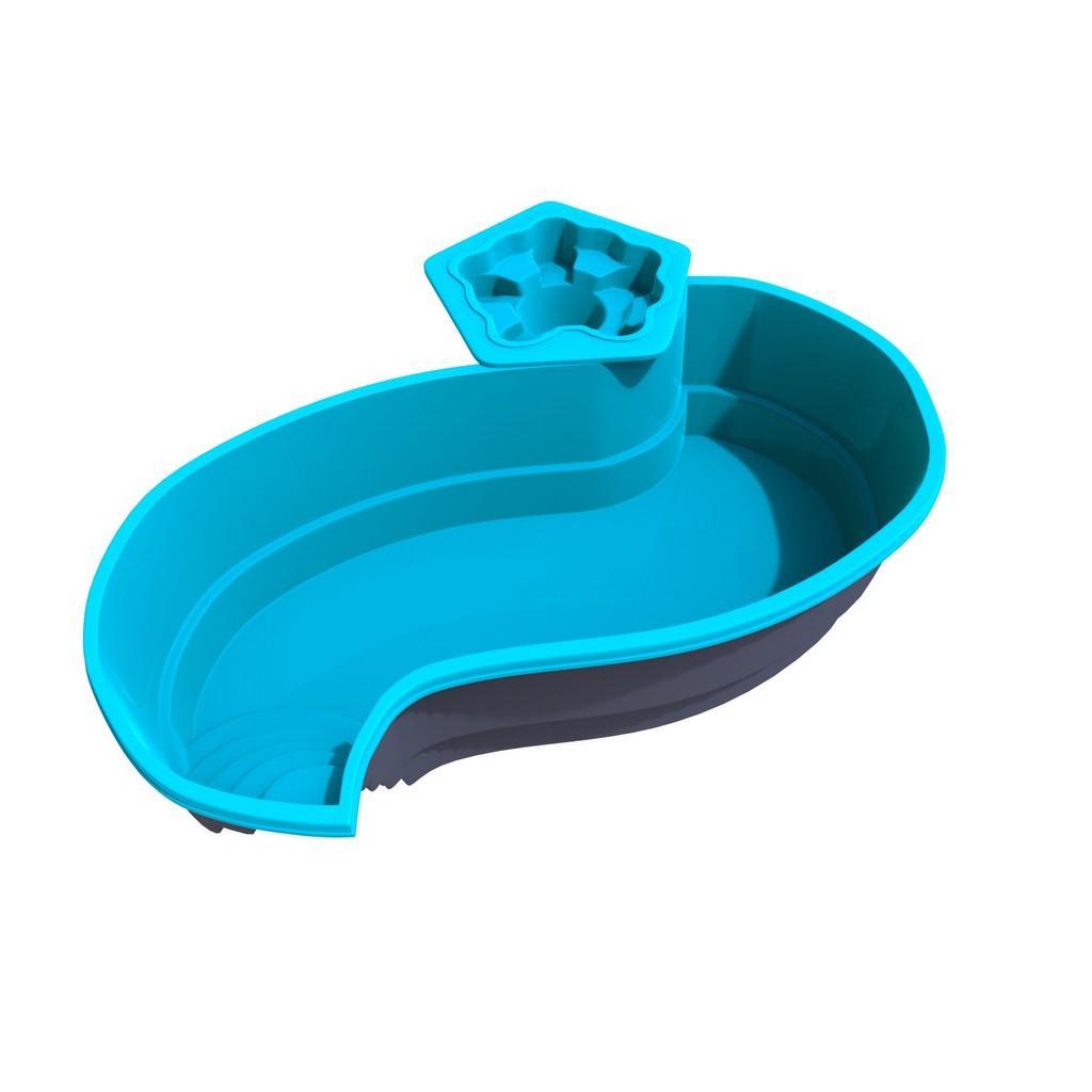 In a pond 6.2 meters long with a depth difference from 1.1 m to 1.5 m, it is convenient to swim, teach kids to stay on the water and play with the ball. Comfortable steps, located in the corner of the bowl, are designed for relaxation and sunbathing. For kids in the pool, there is a children’s area in the form of a separate overflow bowl Chamomile, which, if the customer wishes, the manufacturer will convert into a jacuzzi with the installation of hydromassage jets.