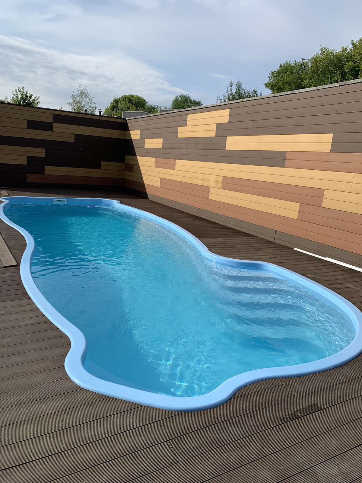 Чаши из композитных материалов прочны и долговечны. Изделие не выгорает под прямыми солнечными лучами и переносит перепады температур. В зимнюю пору нет нужды сливать воду – лед не разрушит конструкцию. Не повредят чашу грунтовые воды и естественная усадка – ставьте бассейн там, где пожелаете. Внутренняя поверхность водоема не требует дополнительной отделки и устойчива к ядохимикатам. Отсутствие теплопроводности у чаши разрешает владельцу экономить электричество на подогреве воды в бассейне.