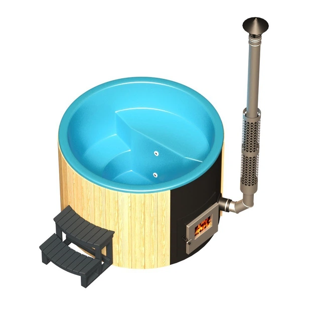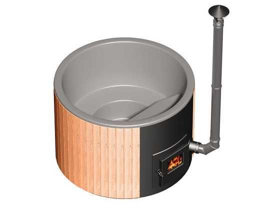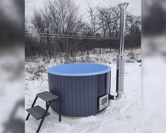 Купель на дровах ”Везувий комфорт” имеет следующие размеры: диаметр – 1,8м., высота 1,1м. Компактная, эстетичная, удобная для компании из 3-4 человек.