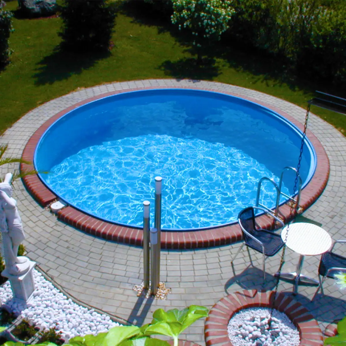 Перевага круглого басейну в ціновій доступності та функціональності. За жорсткістю, міцністю та надійністю чашу позиціонують поруч із бетонними та пластиковими конструкціями. Недолік – підвищена тепловіддача, що вимагає постійного підігріву води в чаші під час купання в холодну пору року. На панельні басейни можна монтувати навісне обладнання, трапи і гідромасажні форсунки.