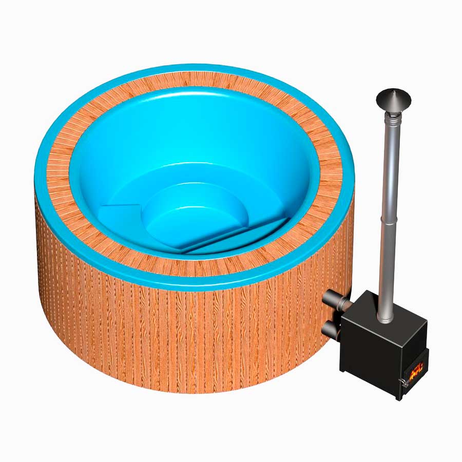 Спа-купіль ”Міраж” переливний із зовнішнім котлом має наступні розміри: діаметр 2.5м., висота 0,95м.