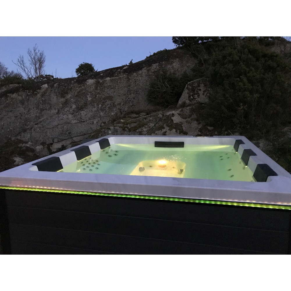 Акрилова чаша СПА має покриття Bio-Lok, яке перешкоджає налипанню бруду на поверхню чаші. Чистий басейн – економія для власника на хімічних препаратах, що ліквідують бруд із бактеріями, та на воді, яка потрібна для змиву. Покриття не вигоряє на сонці та стійке до перепаду температур.